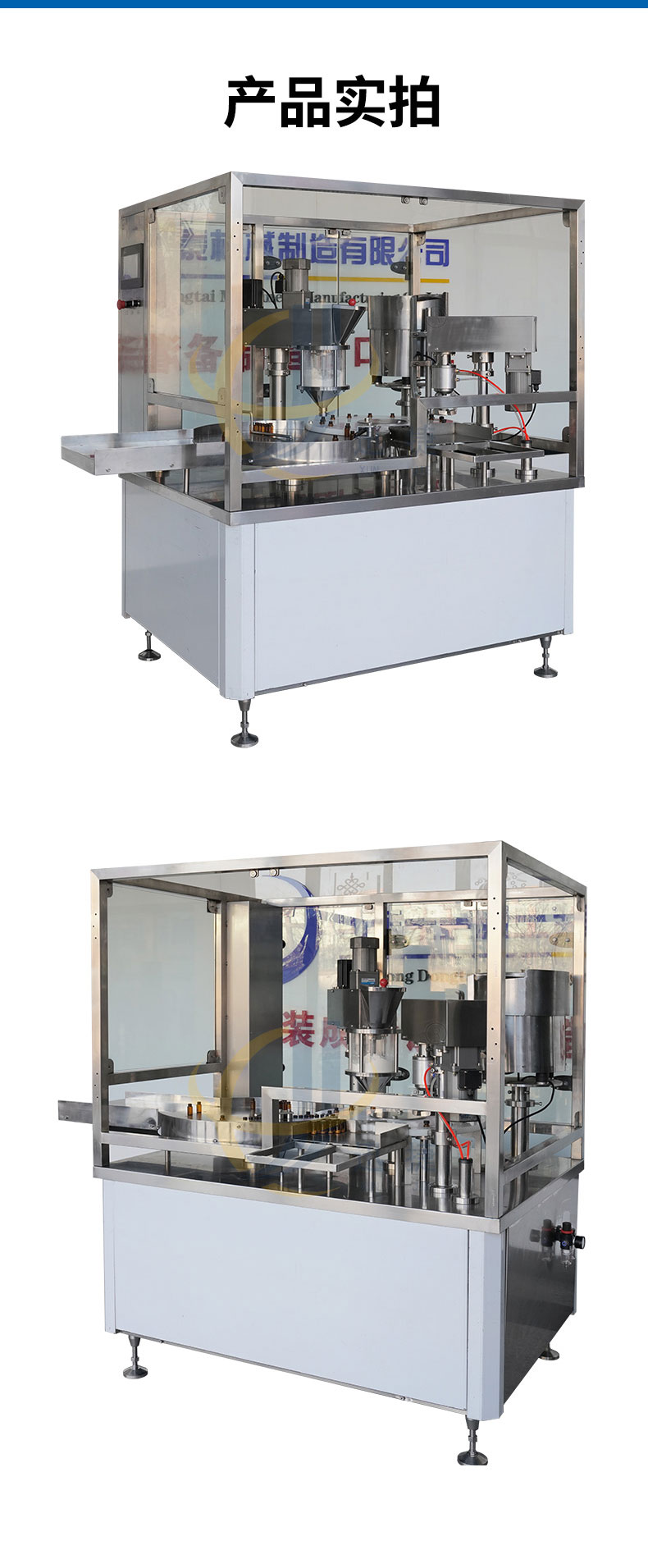 全自動(dòng)粉劑灌裝旋蓋一體機適用于微量類(lèi)面粉粉劑灌裝。人工進(jìn)瓶,設備自動(dòng)進(jìn)瓶,自動(dòng)定量灌裝,自動(dòng)旋蓋。PLC觸屏控制。