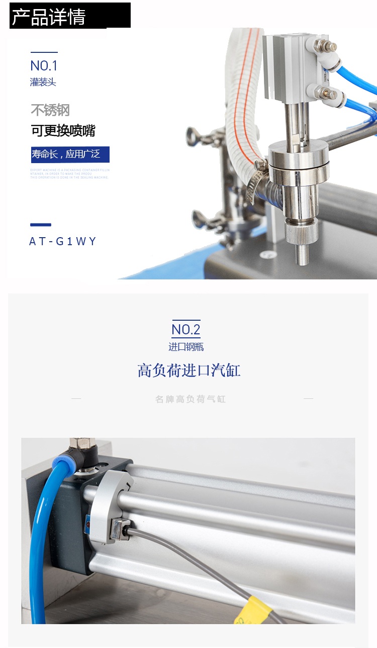 小型半自動(dòng)單頭液體灌裝機氣缸細節展示