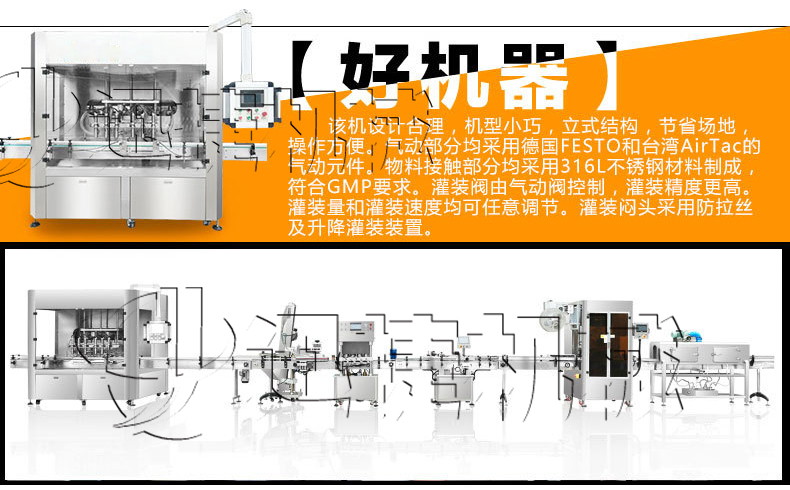1、快速清洗、便于調整、容積缸體動(dòng)作無(wú)極調速,適合不同規格、不同物料的灌裝。充填量一次調整完畢,每個(gè)容積缸體可分別微量調節,灌裝精度高。接觸物料的材料為316不銹鋼、硅橡膠、符合QS規范。