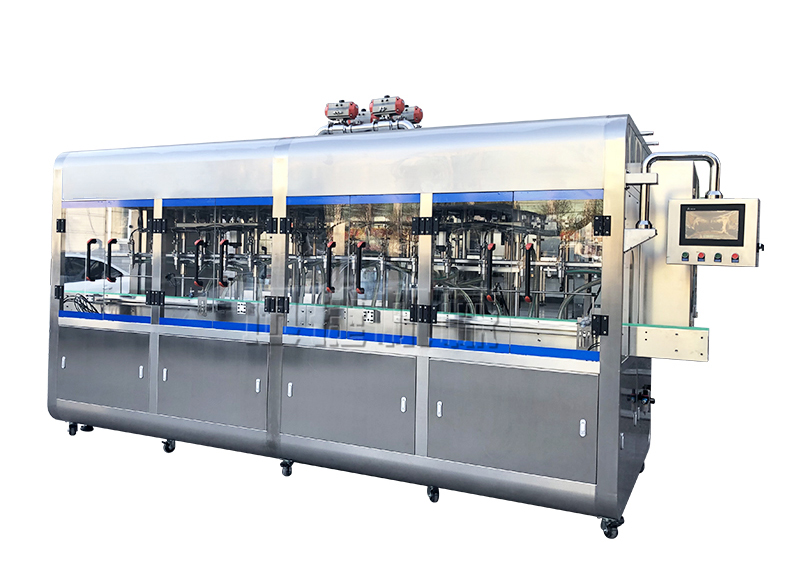 灌裝機儲油箱部分與灌裝機連接法蘭保持原位置,避免沖洗,避免雜質(zhì)進(jìn)入;儲油箱容積≥600KG,內部設有阻擋板,避免油品輸入過(guò)程油品外冒,同時(shí)保證灌裝精度;儲油箱位置設在灌裝機頂部,自帶可視液位計,頂部箱蓋大包圍設計并且可以打開(kāi),具備排氣功能(排出氣泡等);灌裝頭整體上升方式平穩,不產(chǎn)生震動(dòng),高度及寬度可調。