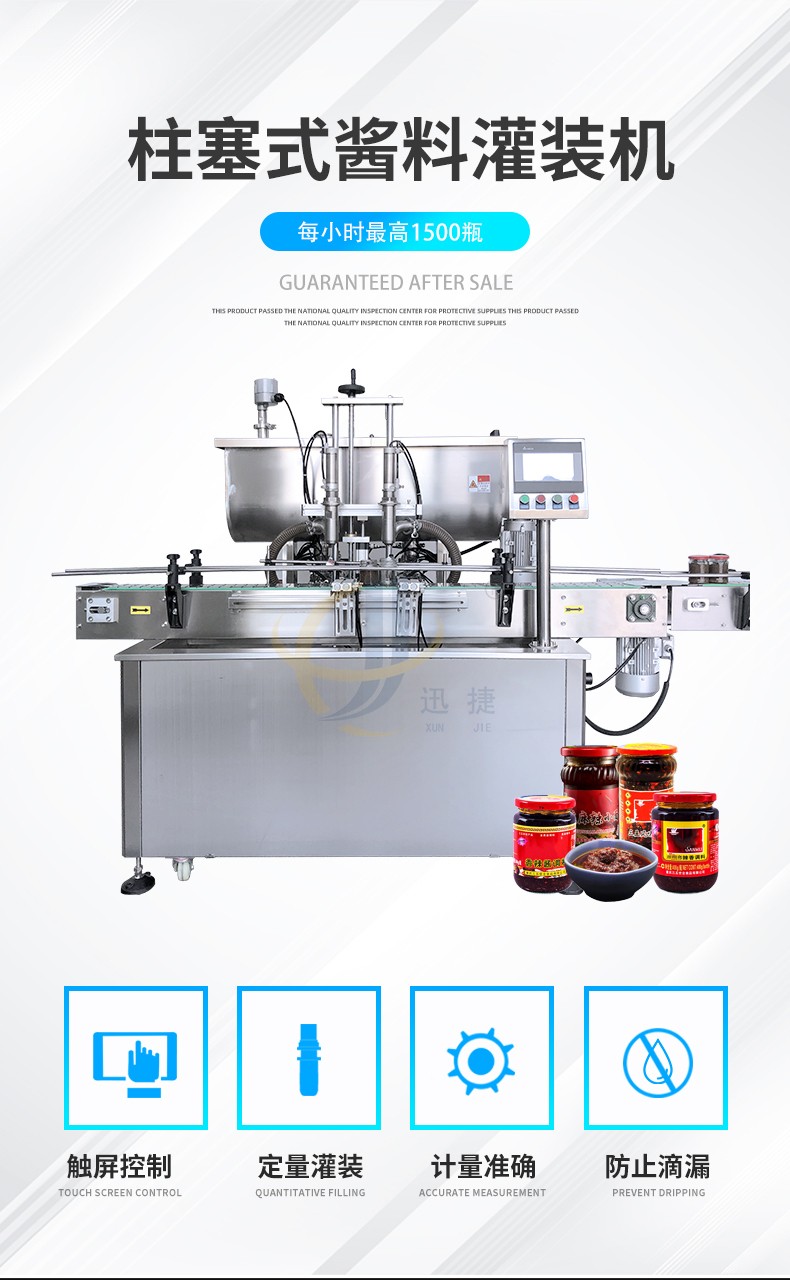 全自動(dòng)雙頭醬料灌裝機兼容6種瓶型,容量范圍內可兼容多種瓶型的灌裝,一鍵式操作,開(kāi)機即能使用。更換瓶型無(wú)需更換配件。