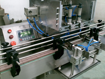 本機與物料接觸均為不銹鋼制作,完全符合GMP標準??焖倩罱舆B接,拆洗方便,灌裝量、灌裝速度均可調節,更 換不同規格形狀的瓶子,不需更換零件,調整容易。另灌裝頭設有防滴漏裝置,灌裝無(wú)拉絲、滴漏;有瓶灌裝、無(wú)瓶不灌裝;設有計數功能,能準確顯示當前產(chǎn)量、 前班產(chǎn)量;并備有自動(dòng)加料控制接口,實(shí)現對加料的自動(dòng)控制。各動(dòng)作平穩、準確無(wú)誤,是目前較為理想的機電氣一體化產(chǎn)品。(該設備需要配備輔助設備:真空泵,真空儲氣罐)